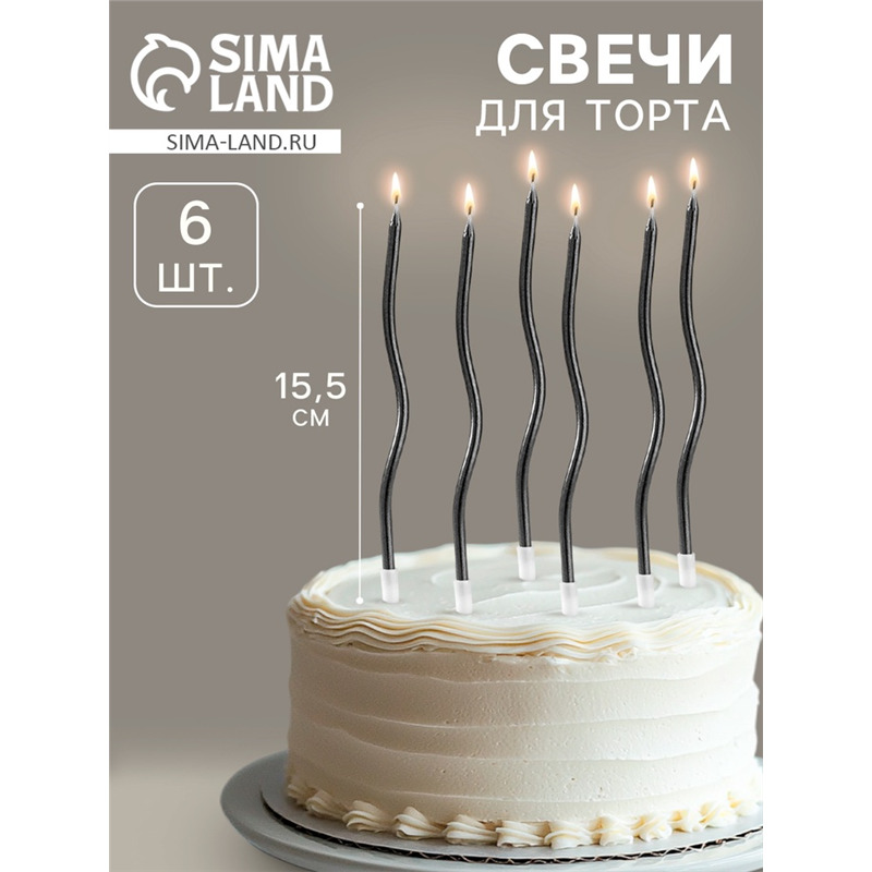 Свечи для торта "Серпантин" 6 шт, черные, 15,5 см