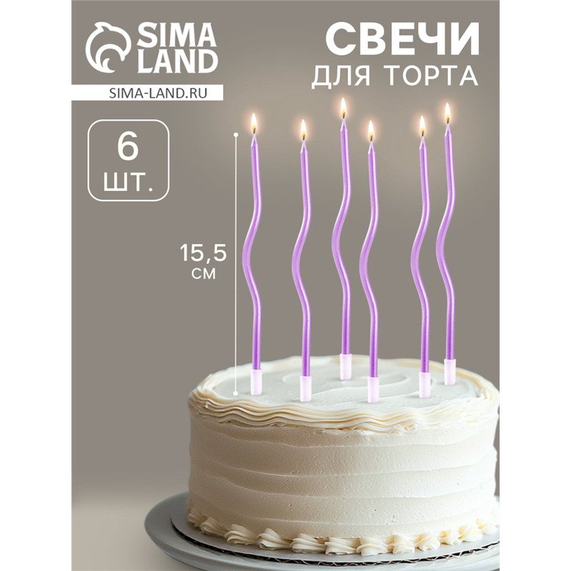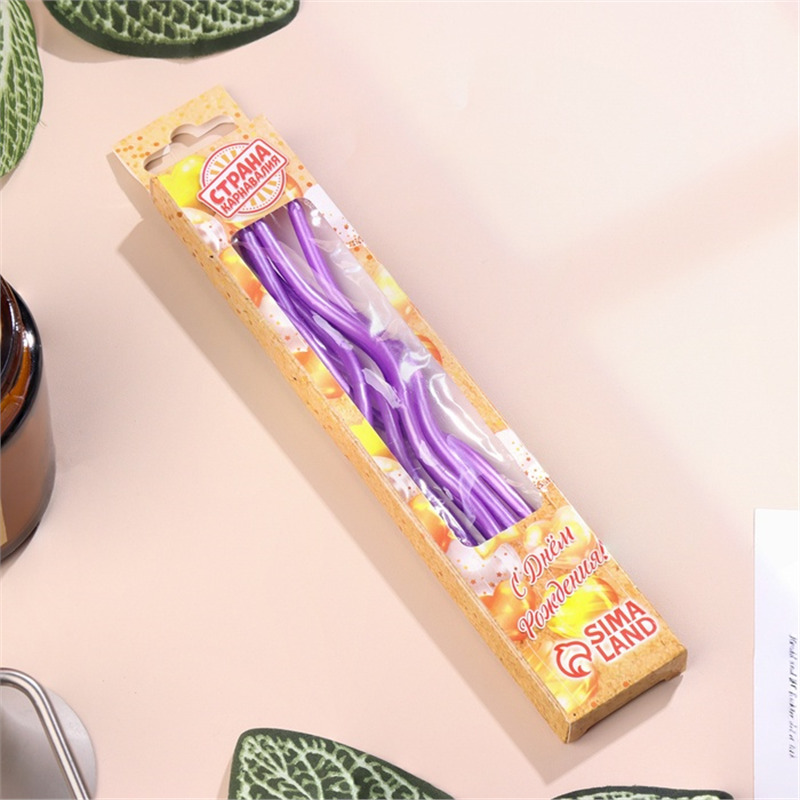 Свечи для торта "Серпантин" 6 шт, сиреневые, 15,5 см